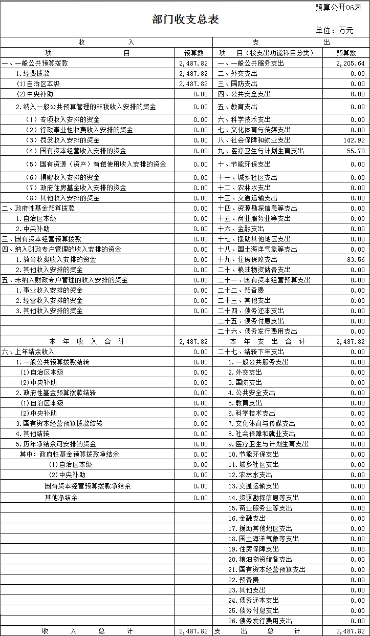 表六:部门收支总表