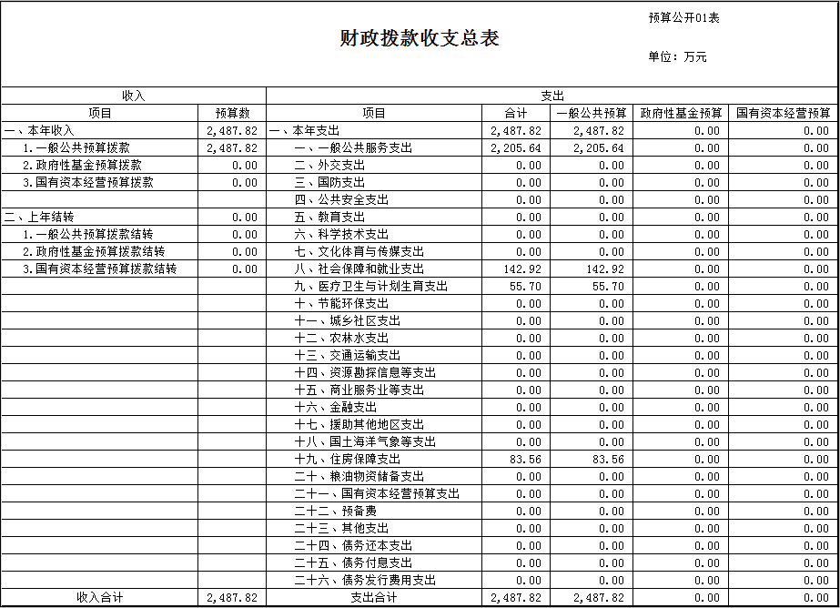 表一:财政拨款收支总表