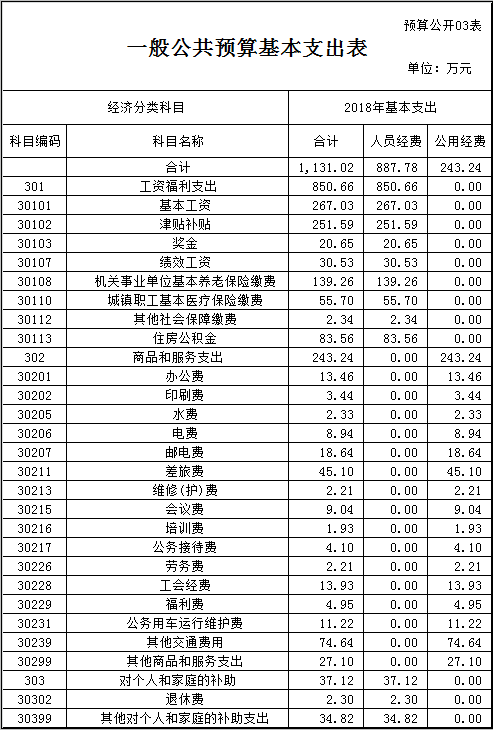 基本支出预算1131.02万元,占支出总预算45.46%,同比增加72.81万元,增长6.88%,其中: