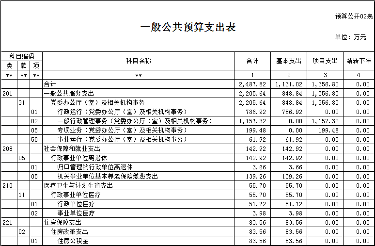 221住房保障支出类83.56万元,占总支出预算3.36%,同比增加1.20万元,增长1.46%