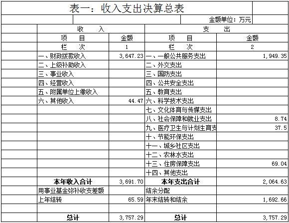 一、一般公共预算财政拨款 | 1 | 3,647.23 | 一、一般公共服务支出 | 20 | 1,946.66 | 1,946.66 |
