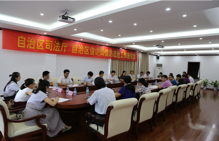 2016年7月13日上午,自治区信访局与自治区司法厅共同在自治区信访局机关举行了“广西法律援助中心自治区信访局工作站”揭牌仪式,这是广西法律援助机构在全区信访机构设立的首个法律援助工作站,标志着全区法律援助和信访工作的“牵手”正式启动。揭牌仪式后,两厅局在自治区信访局机关召开了“信访法治工作座谈会”,就法律援助工作站的建立、运行管理等进行了工作座谈,共同研究我区信访法治化建设新问题、新情况,探讨推动我区信访法治化进程的新思路、新举措。
