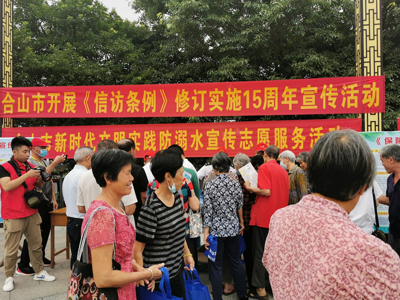 2020年是《信访条例》修订实施十五周年,为切实做好 《信访条例》修订实施十五周年宣传工作,进一步提升广大干部群众依法行政、依法维权、依法合理表达诉求的法治意识,5月18日,合山市组织信访、人社、司法、公安等部门集中开展宣传活动。