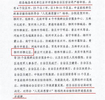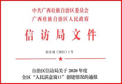 近日,自治区信访局对2020年度全区“人民满意窗口”创建情况进行通报,柳州市柳北区群众信访服务中心经自治区严格审核评估,评分位列全市各县区第三名,符合“人民满意窗口”标准,荣获自治区“人民满意窗口”称号,受到自治区通报表扬。