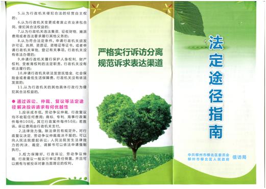 二是为提升信访工作专业化,柳北区信访局与柳北区司法局成立柳北区法律援助中心驻信访局工作站,安排律师值班接访,免费为信访人解答法律问题,提供咨询意见;接受信访部门委托,提出信访个案的法律意见,参与重大复杂疑难信访案件的法律论证、提出专业法律意见;协助有关部门对无理缠访的人员做好息诉息访工作;对符合法律援助条件的信访人,引导其按规定程序申请法律援助或通过其他司法途径解决问题。