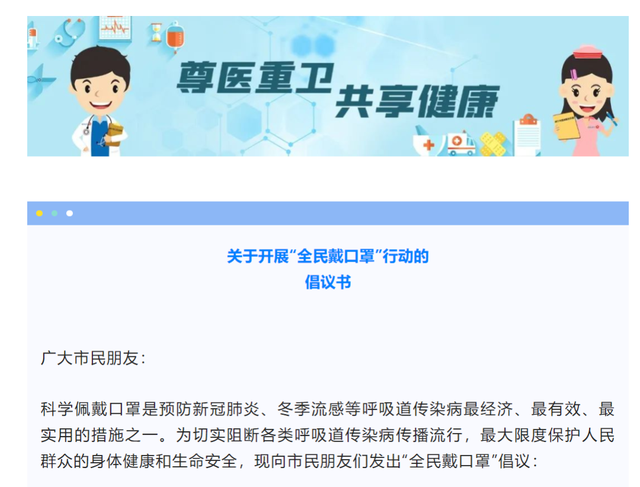 12月20日,“健康南宁”公众号发布《关于开展“全民戴口罩”行动的倡议书》,全文如下↓