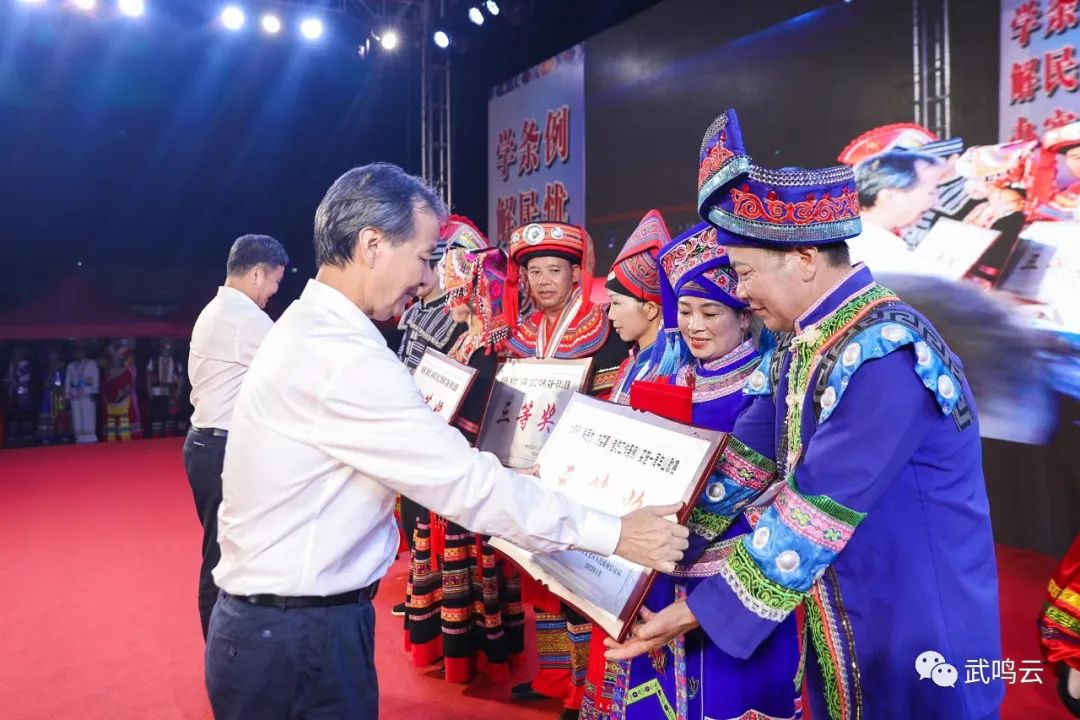 自治区党委副秘书长、信访局局长邱明宏,南宁市委常委、政法委书记黄宁,武鸣区党委书记陈文胜以及自治区、南宁市、武鸣区的相关领导观看了决赛演出。