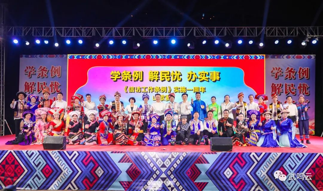 在《信访工作条例》实施一周年之际,由自治区信访局主办,南宁市信访局、武鸣区信访局承办,广西民间艺术家协会、武鸣区委宣传部、武鸣区文联、武鸣区山歌协会协办的大型山歌比赛活动——学条例、解民忧、办实事《信访工作条例》实施一周年山歌赛在武鸣区体育馆广场举行。全区各市的山歌队代表采用广西特色壮话、桂柳话、白话对唱的形式,以歌学法、以歌宣法、以歌促学,把学习贯彻习近平新时代中国特色社会主义思想主题教育与贯彻落实《信访工作条例》相结合,向广大群众宣传信访知识,进一步提高广大人民群众对《信访工作条例》的知晓率,营造依法信访、依法维权的良好环境,推动信访各项工作更好落实,有效促进全区社会和谐稳定。